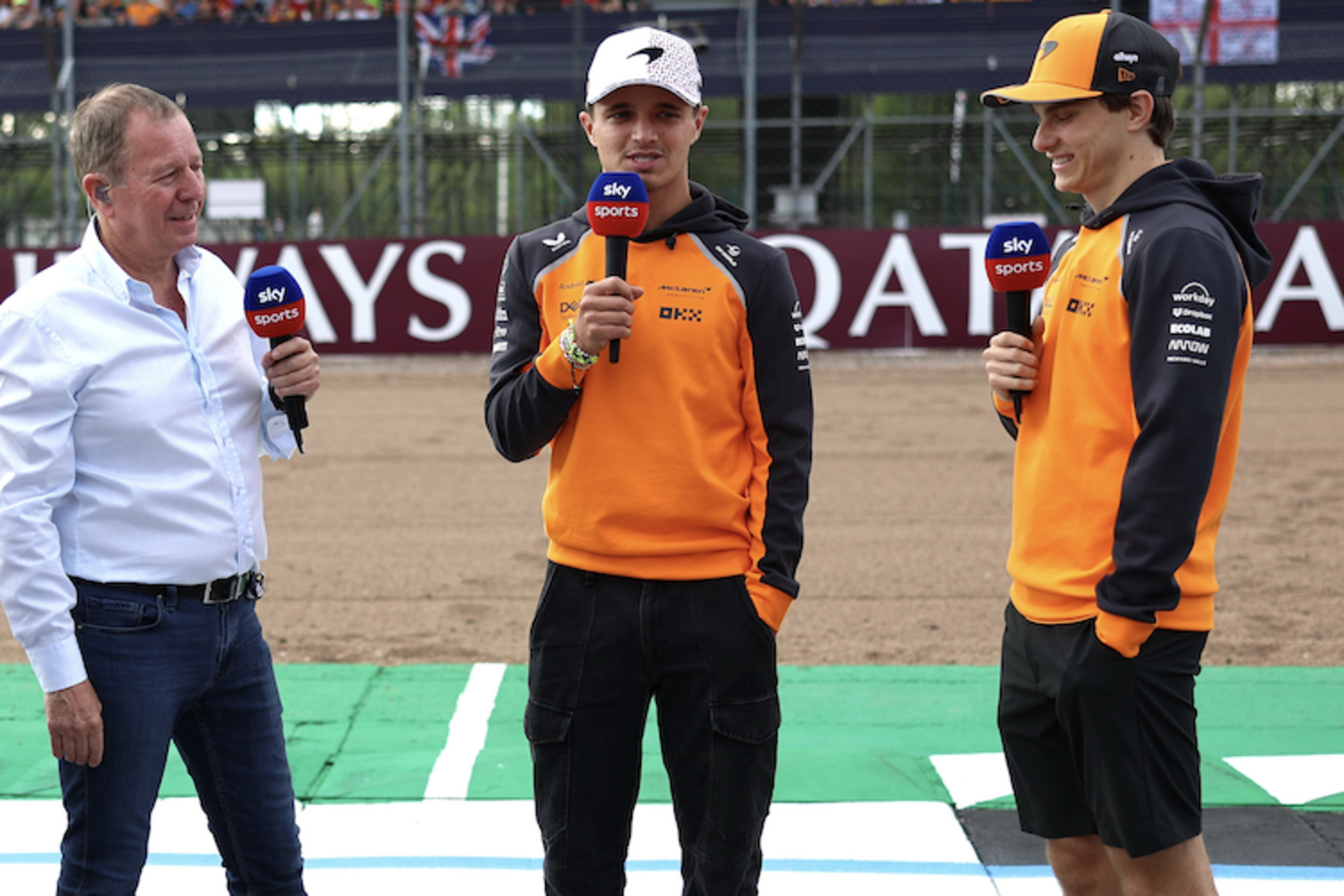 Martin Brundle mit Lando Norris und Oscar Piastri (hier in Silverstone)