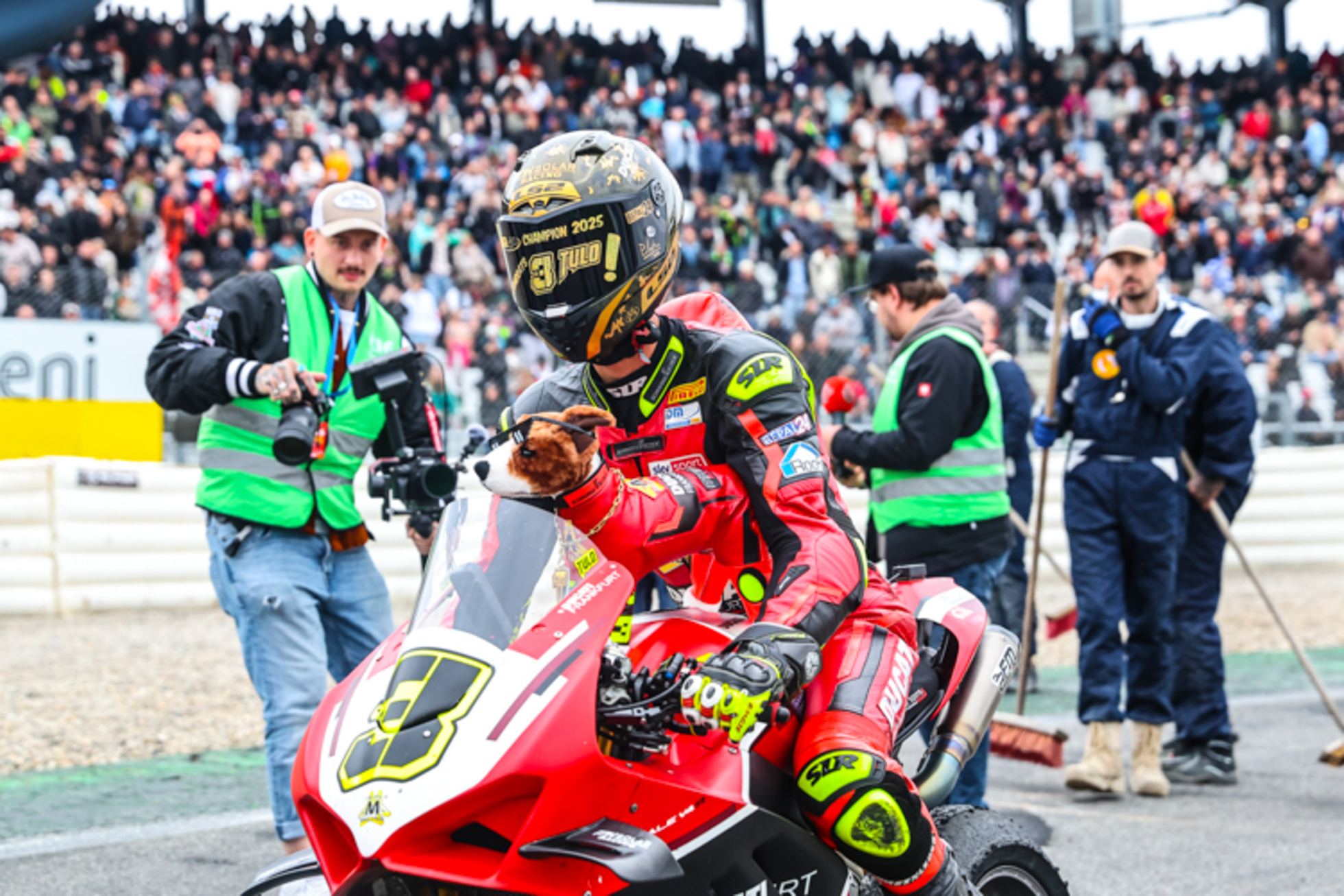 Auf seinem fetten Punktekonto hatte sich Tulovic nicht künstlich zurückgehalten und war volle Pulle ins erste Rennen gestartet. Nachdem das Rennen abgebrochen werden musste und es nur halbe Punkte gab, sickerte der Sieg im Rennen und der vorzeitige Titelgewinn erst nach und nach ins Bewusstsein ein. «Angriff ist die beste Verteidigung», meinte Tulovic dann auch im Interview. «Mit den 41 Punkten Vorsprung, die ich vor dem Rennen hatte, konnte ich ja ein gewissen Risiko gehen. Wenn was schiefgegangen wäre, hätten wir uns für Rennen 2 eine andere Strategie überlegen müssen. Aber ich bin nicht hier, um irgendwie einen achten Platz einzufahren. Natürlich will ich gewinnen. Es war viel Anspannung, viel Druck vor dem Rennen. Es war kein normaler Rennsonntag für mich. Ich habe schon gespürt, was möglich ist und wie der potenzielle Ausgang sein könnte. Deswegen war ich schon angespannter als sonst, aber ich wollte dennoch das Maximum rausholen.»