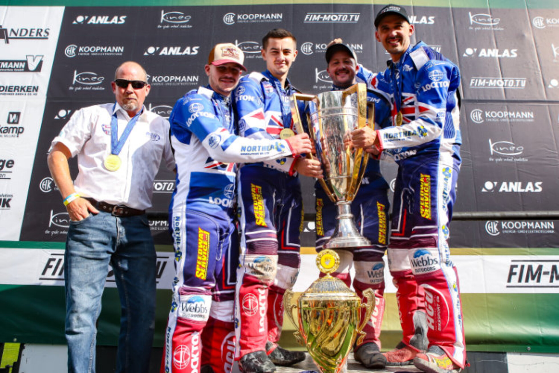 Team GB: Ganz links Teamchef Mitch Godden, in der Mitte Einzelweltmeister Zach Wajtknecht