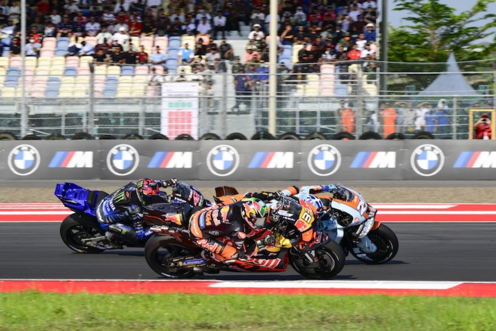 Für Brad Binder war das Hauptrennen in Mandalika dann ein Schritt nach vorn. Er überzeugte am Sonntag mit einer starken Aufholjagd. Aus der fünften Startreihe kommend, kämpfte sich Binder schon in den ersten Runden in die Top-10. In der zweiten Rennhälfte zündete er den Turbo und fuhr konstant mittlere 1:31er-Zeiten, während viele Konkurrenten an GriGrip verloren. Das Podium verpasste er am Ende knapp, Alex Marquez rettete sich mit einer Sekunde Vorsprung.
