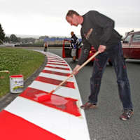 Zwei Tonnen SpezialfarbeDie Vorbereitungen für den Grand Prix Deutschland auf dem Sachsenring laufen auf Hochtouren