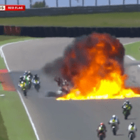 Moto2-EM: Video zum Horrorunfall in AragónExplosion, Feuer, umherfliegende Motorradteile: Im zweiten Lauf der Moto2-Europameisterschaft im MotorLand Aragón ereignete sich am Sonntag ein Massensturz.